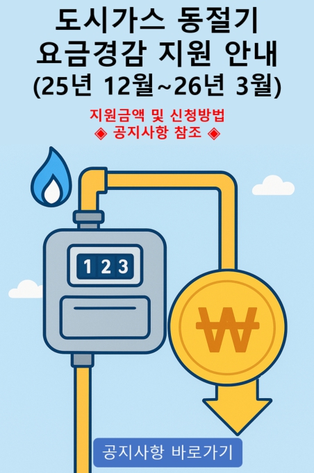도시가스요금 동절기(25년12월~26년3월) 경감지원 안내